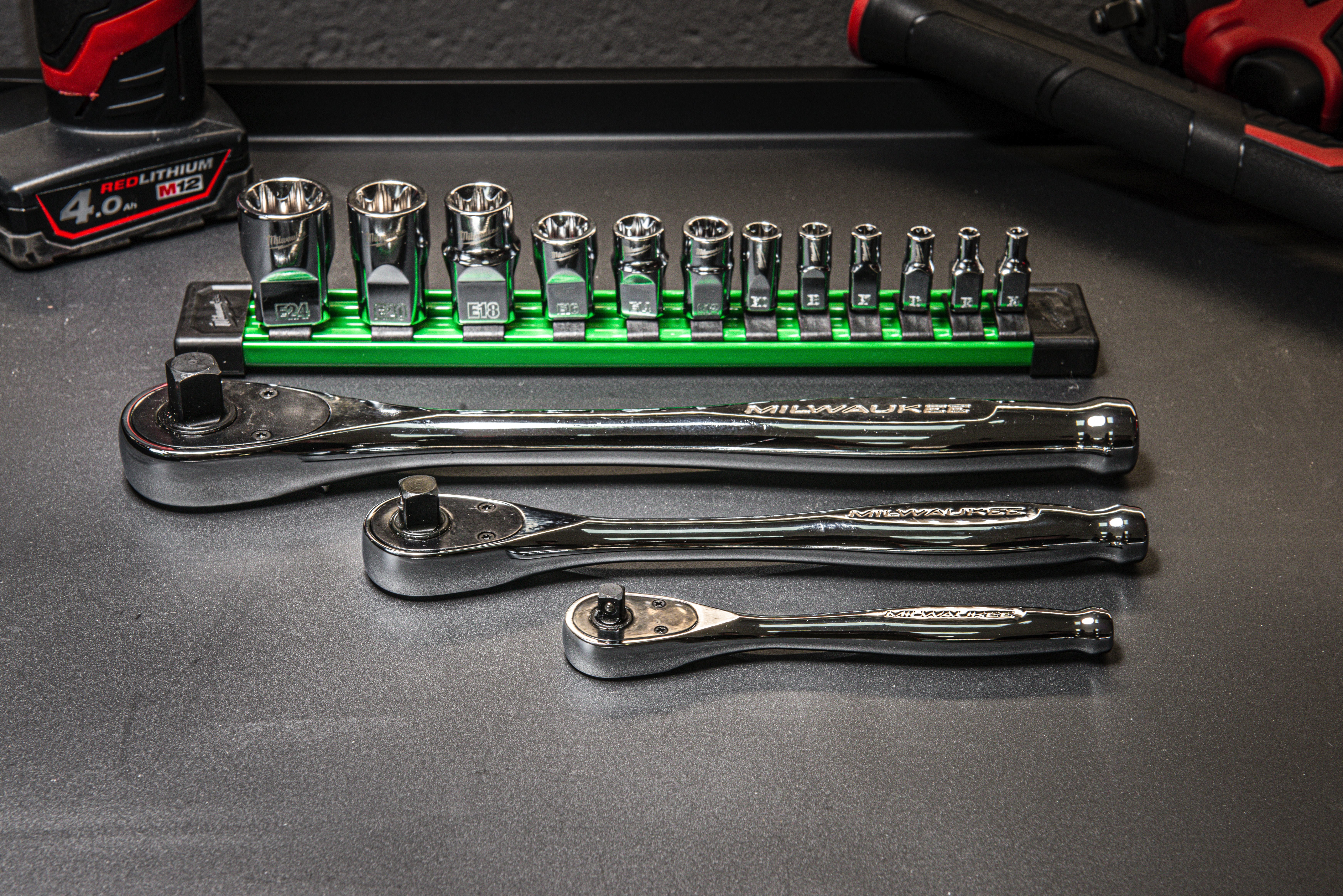 12 teiliger ¼″, ⅜″, ½″ E-TX Steckschlüsseleinsatz